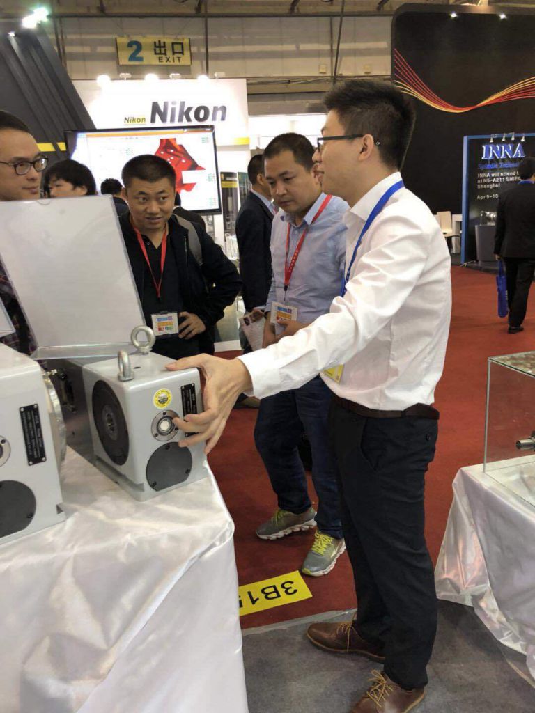 對于這場家門口的盛會,沃迪士自然不會錯過。凸輪滾子傳動機構(gòu)的優(yōu)越性在這幾年間已經(jīng)漸漸被行業(yè)所認識和認可,沃迪士攜帶第四軸數(shù)控轉(zhuǎn)臺(盤面直徑120mm到400mm)以及單臂五軸、搖籃五軸產(chǎn)品在DMP現(xiàn)場吸引了很多的用戶和經(jīng)銷商前來討論詢價,新開發(fā)面世的主軸擺頭則讓來訪的數(shù)控機床商津津樂道,與我們的銷售經(jīng)理熱烈討論配套開發(fā)新型高端機床的合作方案。