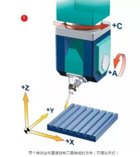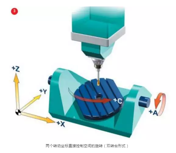 五軸機(jī)床的運(yùn)動(dòng)是五個(gè)坐標(biāo)軸運(yùn)動(dòng)的合成。旋轉(zhuǎn)坐標(biāo)的加入,不但加重了插補(bǔ)運(yùn)算的負(fù)擔(dān),而且旋轉(zhuǎn)坐標(biāo)的微小誤差就會(huì)大幅度降低加工精度。因此,要求控制器有更高的運(yùn)算精度。