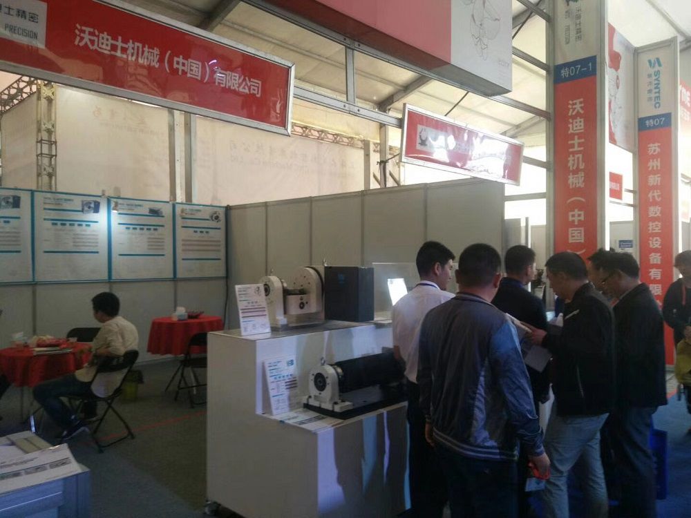 沃迪士在本次展覽會上展出的四軸回轉(zhuǎn)工作臺、五軸數(shù)控轉(zhuǎn)臺吸引了大家的眼球。高剛性,高速度,正反轉(zhuǎn)零背隙,這些都是我們凸輪滾子轉(zhuǎn)臺的優(yōu)點。