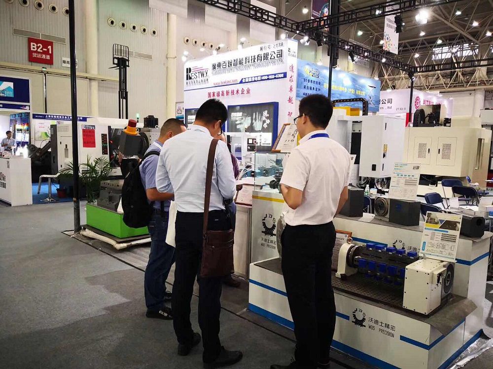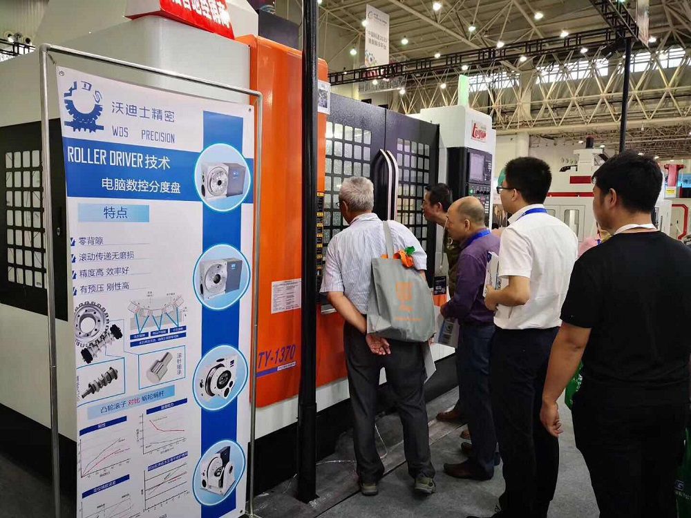 沃迪士攜帶了凸輪滾子結(jié)構(gòu)四軸,五軸轉(zhuǎn)臺(tái),臥加轉(zhuǎn)臺(tái)等產(chǎn)品亮相其中。同時(shí)沃迪士在合同伙伴機(jī)床上展示了單臂五軸T100及搖籃五軸RT350,并做了現(xiàn)場(chǎng)加工演示。吸引了大批專業(yè)觀眾的目光。